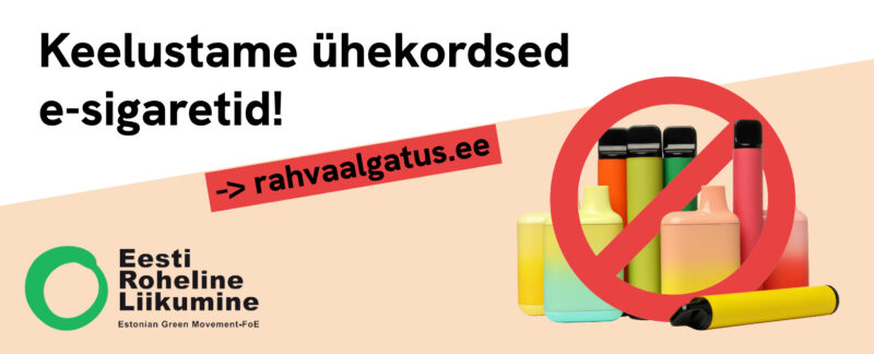 Ühekordsete e-sigarettide keelustamist saab toetada kahel moel: toeta meid annetusega läbi Ma Armastan Aidata keskkonna: https://www.armastanaidata.ee/annetan/loomad-ja-loodushoid/eesti-roheline-liikumine-meiega-seisad-keskkonna-eest või anna oma allkiri rahvaalgatusele: https://rahvaalgatus.ee/initiatives/1542-keelustame-%C3%BChekordsed-e-sigaretid-eestis