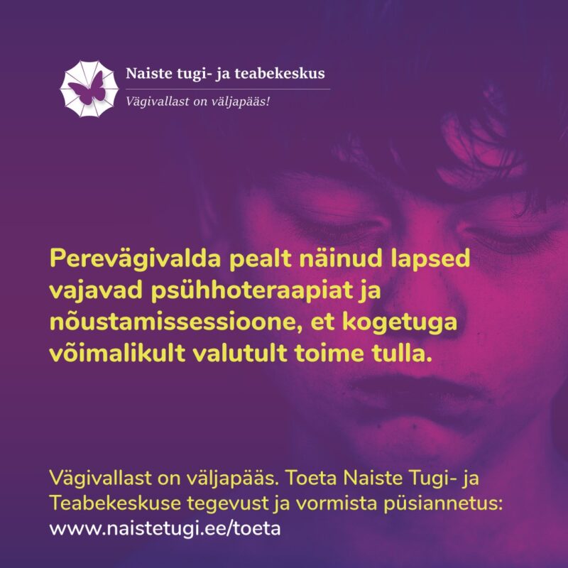 Annetada saab: Ülekandega MTÜ Naiste Tugi- ja Teabekeskus EE912200221019998649, selgituseks: annetus, laste psühholoogiline abi