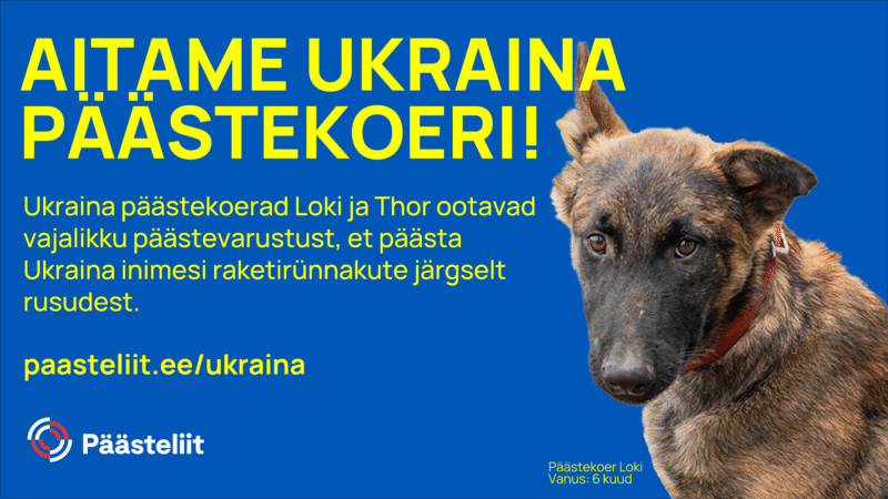 Päästeliit kogub annetusi Ukraina päästeteenistuse otsingukoertele varustuse soetamiseks.